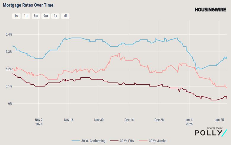 Interest rates remained flat from January 23rd to January 29th. The Federal Reserve held interest rates steady Wednesday as expected, but two governors dissented, preferring a quarter-point cut. It’s the first time since July that the central bank has chosen to pause its rate-cutting cycle, having lowered rates three times last year as it monitored the economic effects of President Donald Trump’s aggressive policies.