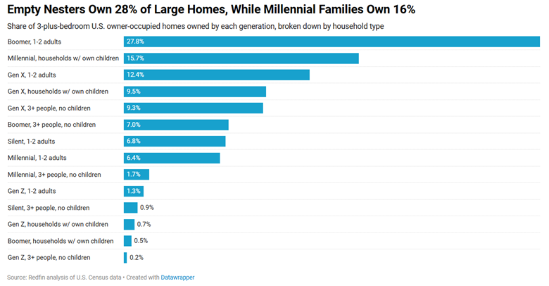The Great Housing Mismatch: Empty Nesters Own 28% of the Nation’s Large Homes, Millennial Families Own 16%: